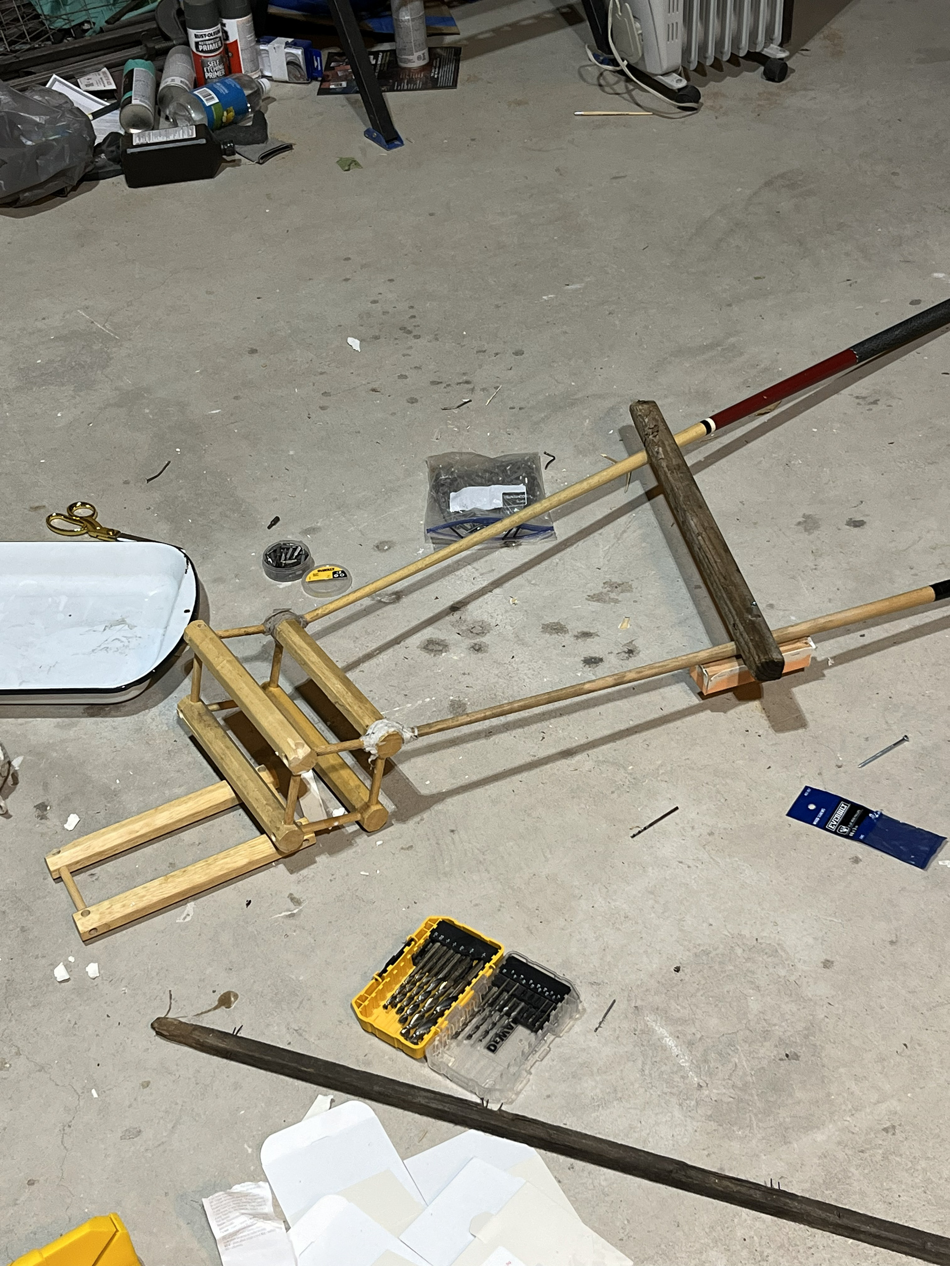 Blair arrived to help me built these large ladders for the next show. We weren't 15 minutes before both deciding we needed to collaborate on a large painting together in the meantime...